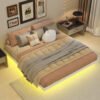 8 reviews for King Size Floating Bed with LED Lights Underneath,Modern King Size Low Profile Platform Bed with LED Lights,White