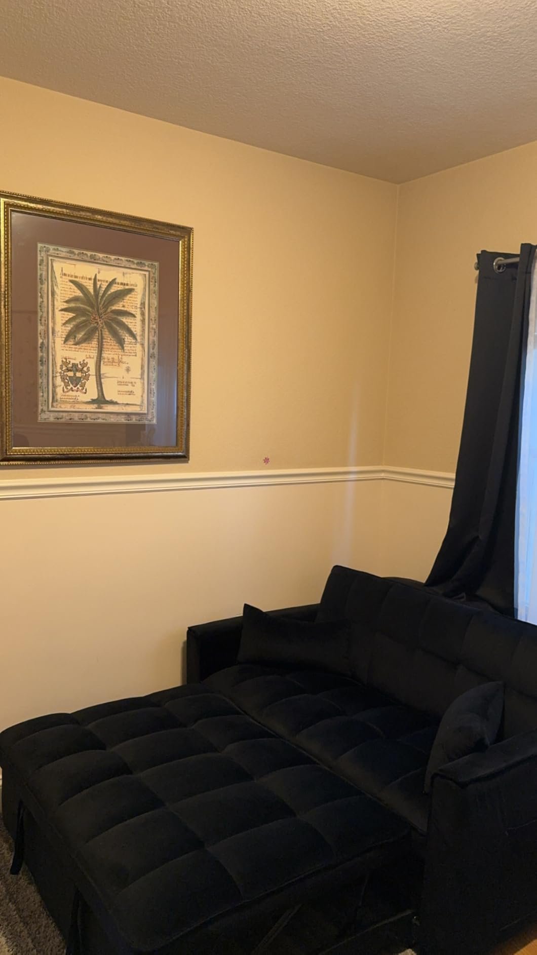 Perfect couch for living room! Very easy to assemble and comfortable! I would recommend this couch to anyone! The storage space is great and the pull out part adds to the comfort!