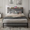 1. Queen Size Bed Frame with Charging Station, Upholstered Headboard, Metal Platform, Grey photo review
