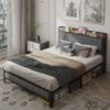 7 reviews for Queen Size Bed Frame with Charging Station, Upholstered Headboard, Metal Platform, Grey