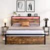 Smart RGB Led Bed Frame Queen: This Led bed frame features with Led-lit headboard for ambient mood lighting and the combination of rustic-wood and metal accents for industrial appearance. More than 60,000 color to be choose from, brightness, flash mode, timing, etc., can use the equipped remote control or mobile APP to set free easily. Change the led color to meet your needs of different styles and make the atmosphere more vivid! Also make your home life more colorful.