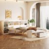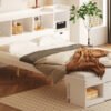 [Multiple Storage Headboard] There are 7 open storage compartments and 2 closeable cabinets at the head of the bed. They will easily storage your belongings, including books, toys, or bedding. The top of the bed is slightly higher and can be used to place your mobile phone, desk lamp, etc.