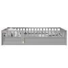 Twin Size Floor bed, integral construction with super high security barrier, door, children's floor bed frame, Montessori wooden children's floor bed, Support slat Grey