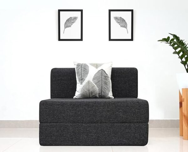 The cushioning is firm yet comfortable, offering good support whether sitting or sleeping. The build quality is sturdy, and the fabric/material feels durable. It’s a fantastic space-saving solution, especially for smaller rooms or apartments.